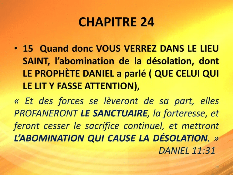 DES QUE JUDA DÉCLARERA L’ABOMINATION DANS MON ÉGLISE ( Suppression de l’Eucharistie ) : SOYEZ CONSCIENTS QUE TOUT EST FINI !